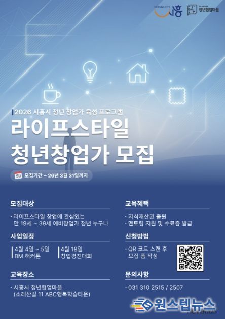 원스텝뉴스 이병희 기자 | 시흥시는 ‘2026 청년 창업가 육성 프로그램’의 일환으로 라이프스타일 분야 예비 청년창업가를 대상으로 실전형 창업 프로그램인 ‘창업 해커톤’과 ‘창업 경진대회’를 운영하고, 오는 3월 31일까지 참가자 30명을 모집한다.