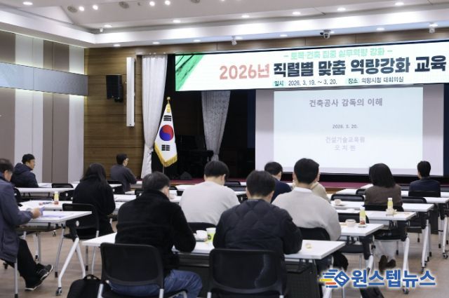 원스텝뉴스 이병희 기자 | 의왕시는 3월 19일부터 20일까지 이틀간 시청 대회의실에서 공직자의 직무 전문성 향상을 위한 ‘2026년 직렬별 맞춤 역량강화 교육’을 실시했다.