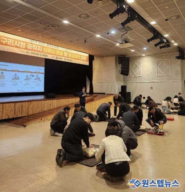 원스텝뉴스 이병희 기자 | 구리시는 3월 16일부터 4월 28일까지 총 16기에 걸쳐 시청 대강당에서 공직자 400명을 대상으로 '심폐소생술 등 응급처치 교육'을 실시하고 있다고 밝혔다.