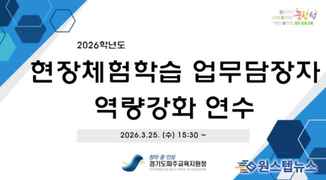 이를 위해 파주교육지원청은 3월 25일, 경기도교육청 업무협업 G-ONE 플랫폼을 기반으로 ‘2026학년도 현장체험학습 업무담당자 역량강화 연수’를 비대면으로 실시했다.