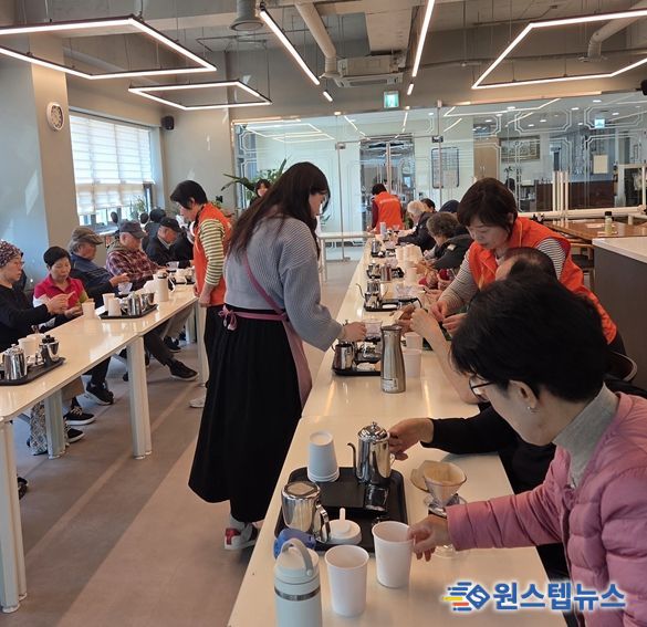 이날 교육은 전문 바리스타의 지도 아래 진행됐으며, 참여한 어르신들은 드리퍼, 서버, 드립 포트 등 기구별 특성에 따른 추출 원리를 학습하고, 원두의 분쇄도와 물의 온도에 따라 변화하는 커피의 풍미를 체험하며 직접 커피를 추출해 보는 시간을 가졌다. 교육 후에는 각자 선호하는 원두로 커피를 함께 시음하며 이웃들과 담소를 나누는 화기애애한 분위기가 이어졌다.