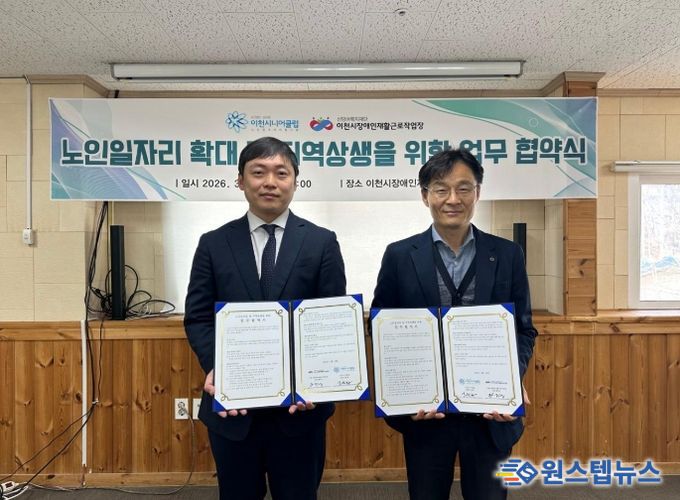 원스텝뉴스 이병희 기자 | 이천시는 이천시니어클럽이 2026년 신규 노인일자리 사업으로 장애인 지원 사업을 추진하고, 3월 23일 이천시장애인재활근로작업장과 업무협약을 체결했다고 밝혔다.