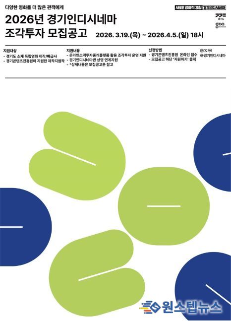 원스텝뉴스 이병희 기자 | 경기도와 경기콘텐츠진흥원은 상업영화의 높은 벽에 가로막힌 독립영화 활성화를 위해 도민이 직접 투자자로 참여하는 ‘2026년 경기인디시네마 조각투자’에 참여할 장편 독립영화를 3월 19일부터 4월 6일 오후 4시까지 모집한다.