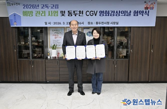 원스텝뉴스 이병희 기자 | 동두천시는 지난 23일 동두천시청 시장실에서 동두천 CGV와 함께 고독·고립 위험자 예방 관리 사업의 일환으로 업무 협약(MOU)을 체결했다.