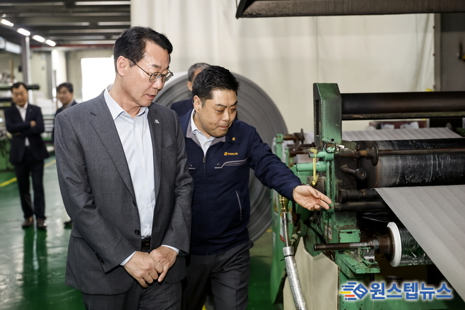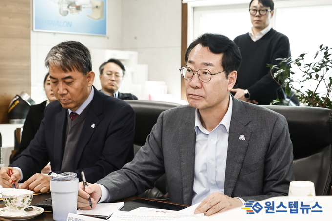 정명근 화성특례시장은 25일 오후, 중동발 에너지 쇼크의 직격탄을 맞은 관내 보온재 제조 기업 ㈜한성하나론 공장을 방문해 생산라인을 점검하고 기업인들의 애로사항을 청취했다.