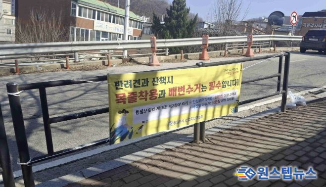 이날 동물복지팀 직원들은 시민들이 주로 이용하는 도로를 중심으로 배변 수거 활동을 직접 실시하는 한편, 반려동물 목줄 착용과 배설물 수거 등의 문구가 담긴 현수막을 게시했다.