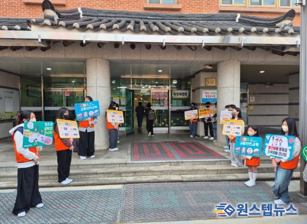 이번 캠페인은 학생들이 주도적으로 준비하고 질서정연하게 참여한 아침 활동으로, 학생들의 등교 시간에 맞춰 아침 시간대에 진행됐다. 참여 학생들은 교통안전과 학교폭력 예방 메시지가 담긴 피켓을 들고 구호를 외치며 어린이 보호구역에서 교통안전과 학교폭력 예방의 중요성을 알렸다.