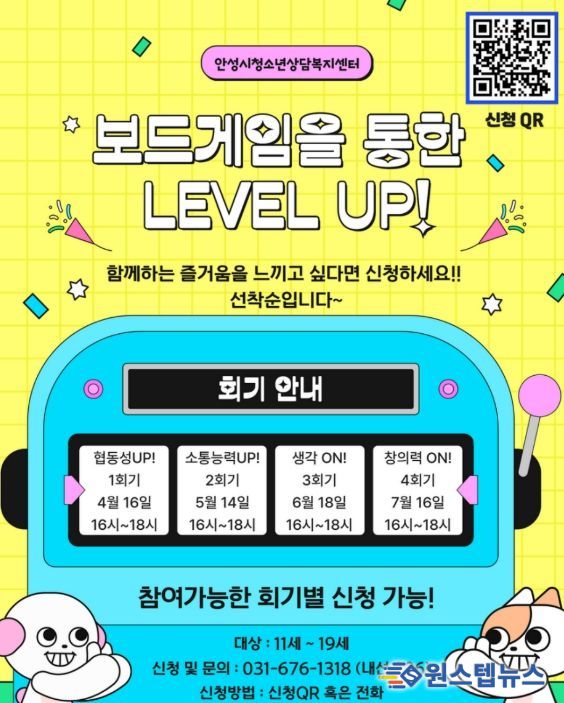 원스텝뉴스 이병희 기자 | 안성시 청소년상담복지센터는 오는 4월부터 11월까지 관내 청소년(11세~19세)을 대상으로 ‘문제해결 능력 향상 프로그램’을 운영한다고 밝혔다.