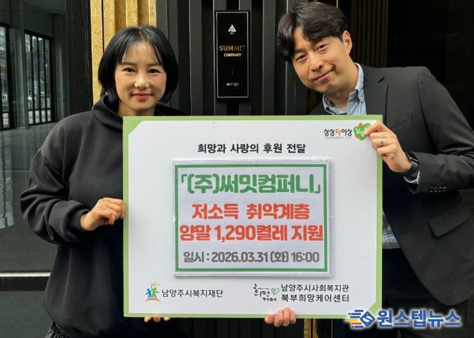 시 관계자는 “따뜻한 마음을 전해주신 ㈜써밋컴퍼니에 깊이 감사드리며, 앞으로도 민간 자원과의 협력을 강화하여 지역사회 복지 증진에 힘쓰겠다”고 말했다.
