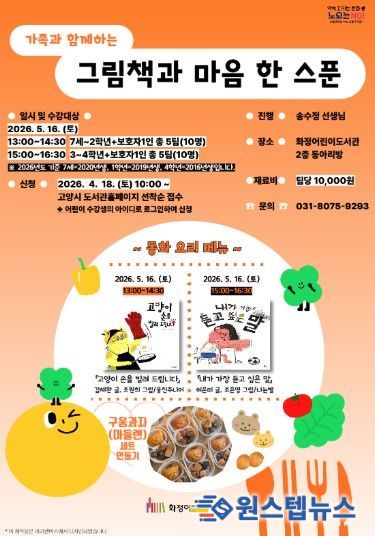 원스텝뉴스 천규영 기자 | 고양특례시 화정어린이도서관은 오는 5월 16일 어린이 동화요리 프로그램 ‘가족과 함께하는-그림책과 마음 한 스푼’을 운영한다.