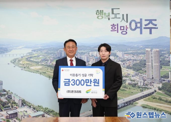 원스텝뉴스 이병희 기자 | 지난 8일 부석환 ㈜콘크리트 대표는 여주시청을 방문하여 이웃돕기 성금 300만원을 기탁했다.