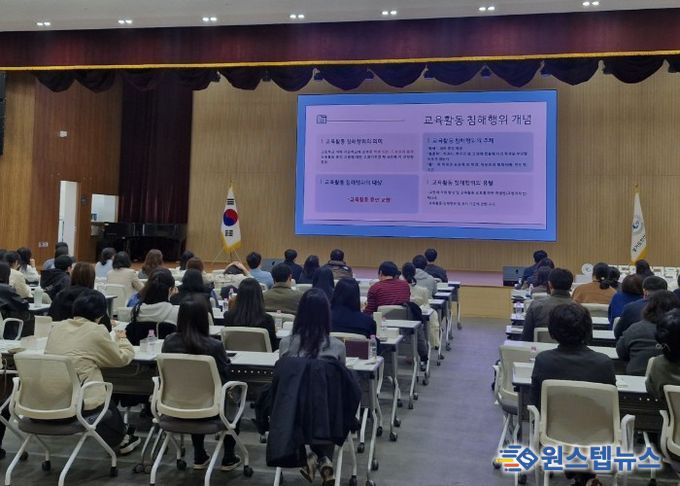 이번 연수는 관내 유·초·중·고 및 특수학교 교육활동 보호 업무 담당자와 희망 교원 130여 명이 참석한 가운데, 교육활동 보호에 대한 현장 이해를 높이고 공정한 사안 처리와 회복 중심 지원 역량을 강화하기 위해 마련됐다.