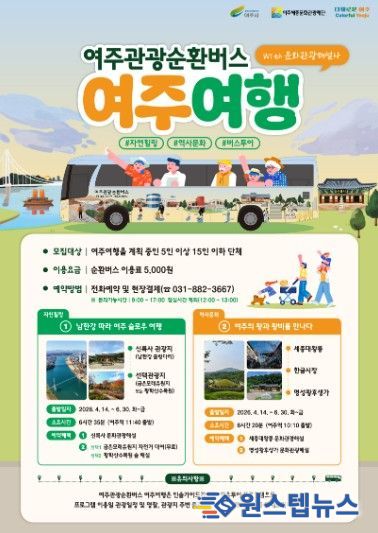 원스텝뉴스 이병희 기자 | 여주세종문화관광재단은 관광순환버스와 문화관광해설을 결합한 ‘여주관광순환버스 여주여행 with 문화관광해설사’프로그램을 시범 운영한다고 밝혔다.