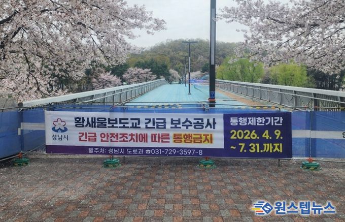 이번 조치는 수내동 탄천 교량인 황새울보도교가 2023년 정자교 사고 이후 실시한 관내 교량 전수조사에서 구조적 이상이 없는 것으로 확인됐으나, 최근 중대결함이 추가로 발견됨에 따라 시민 안전 확보를 위해 내려진 선제 대응이다.