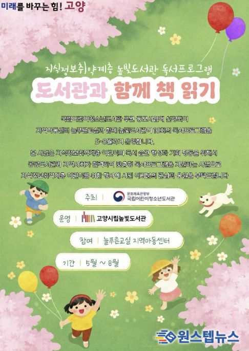 원스텝뉴스 이병희 기자 | 고양특례시 높빛도서관이 오는 5월부터 8월까지 늘푸른교실 지역아동센터와 협력한 ‘2026년 도서관과 함께 책 읽기’ 프로그램을 운영한다고 13일 밝혔다.