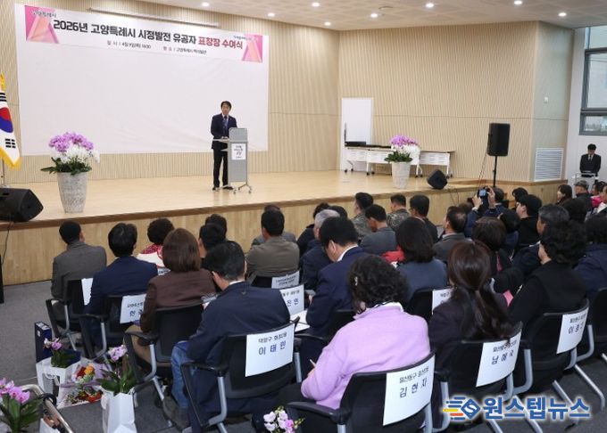 원스텝뉴스 이병희 기자 | 고양시자원봉사센터는 지역사회 발전을 위해 헌신한 우수 자원봉사자들의 공로를 기리기 위해 ‘2026년 1분기 자원봉사자 표창장 수여식’을 지난 9일 고양시청 백석별관에서 성황리에 개최했다.