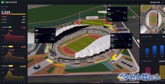 우선 시스템을 통해 고양종합운동장 동문·남문·북문 등 주요 지점별 관람객 밀집 현황과 이동 경로를 실시간으로 파악 및 분석하고 이를 경찰, 소방 등 유관기관에 공유함으로써 향후 현장 대응체계에 활용할 가능성을 확인했다.