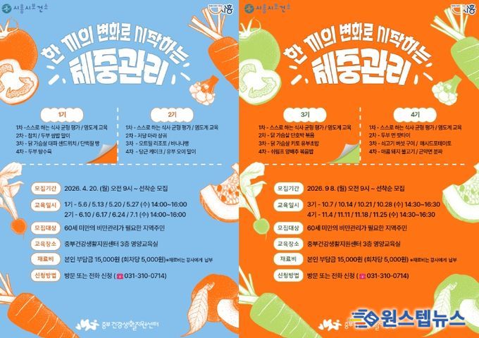 원스텝뉴스 이병희 기자 | 시흥시보건소 중부건강생활지원센터는 지역주민의 올바른 식생활 실천을 유도하고 건강한 체중 관리 및 비만 예방을 위해 영양·조리 교육 프로그램 ‘한 끼의 변화로 시작하는 체중관리’를 센터 영양교육실에서 운영한다.