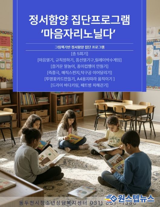 원스텝뉴스 이병희 기자 | 동두천시청소년상담복지센터는 지역 내 초등학교와 연계해 2026년 4월부터 11월까지 아동과 청소년을 대상으로 한 그림책 기반 정서발달 집단 프로그램을 운영한다.