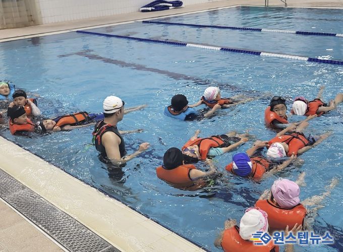 주요 교육 내용으로는 ▲수영장 안전교육 및 재난대피 훈련 ▲물 적응 및 호흡훈련 ▲생존뜨기 및 체온 유지법 ▲수중 이동 및 구조 기초활동 등이 진행되며, 실제 위기 상황에서 필요한 대응 능력을 단계적으로 익힐 수 있도록 구성했다.