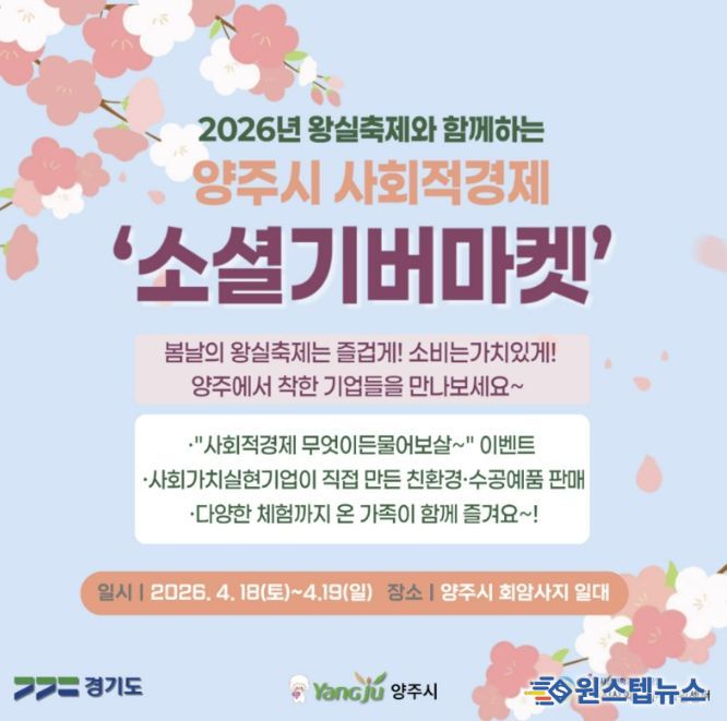 원스텝뉴스 이병희 기자 | 양주시는 4월 18~19일 양주 회암사지에서 열리는‘2026 회암사지 왕실축제’ 기간 중 ‘사회적경제 소셜기버마켓’을 운영한다.