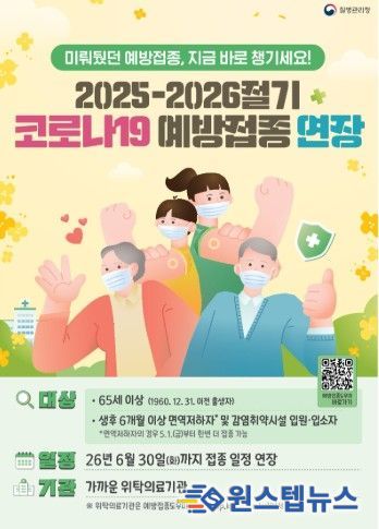 원스텝뉴스 이병희 기자 | 이천시보건소는 질병관리청 지침에 따라 2026년 여름철 코로나19 유행에 대비하고자 ‘2025-2026절기 코로나19 예방접종’ 기간을 기존 4월 30일에서 6월 30일까지 연장한다고 밝혔다.