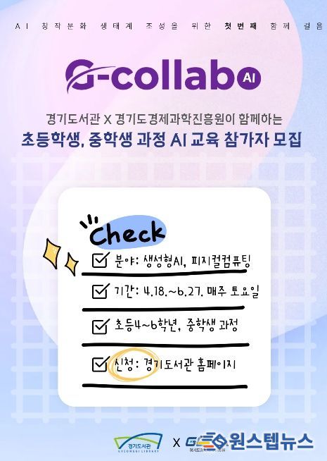 원스텝뉴스 이병희 기자 | 경기도서관은 경기도경제과학진흥원 협업 프로젝트 ‘지-콜라보(G-Collabo)’를 기후환경 중심에서 인공지능(AI) 분야까지 확대하고, 오는 6월까지 초·중등 대상 로봇공학 체험 프로그램을 운영한다.
