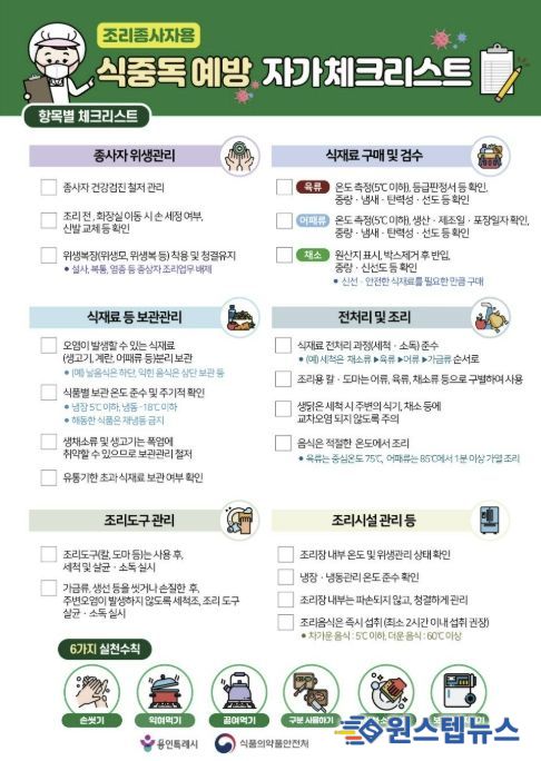또 조리 종사자들을 대상으로 개인 위생 관리 수칙을 준수하고, 급식·배식 단계별 위생관리 요령, 대량 조리 시 주의 사항 등을 반드시 지켜달라고 했다.