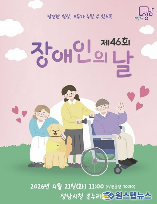 원스텝뉴스 천규영 기자 | 성남시는 ‘제46회 장애인의 날(4.20)’을 맞아 오는 4월 21일 오전 11시 시청 1층 온누리에서 기념식을 연다.
