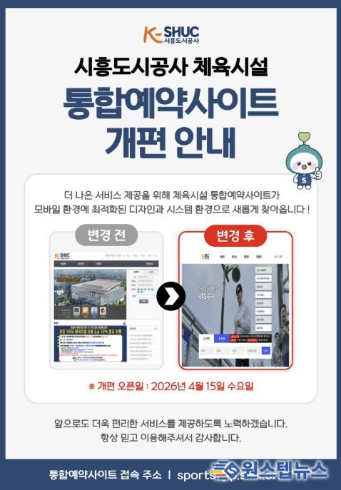 원스텝뉴스 이병희 기자 | 시흥도시공사는 지난 15일, 시민들의 체육시설 이용 편의를 극대화하고 행정 서비스의 효율성을 높이기 위해 추진한 ‘체육시설 회원정보시스템 고도화 사업’을 성공적으로 완료하고 정식 운영에 들어갔다고 밝혔다.