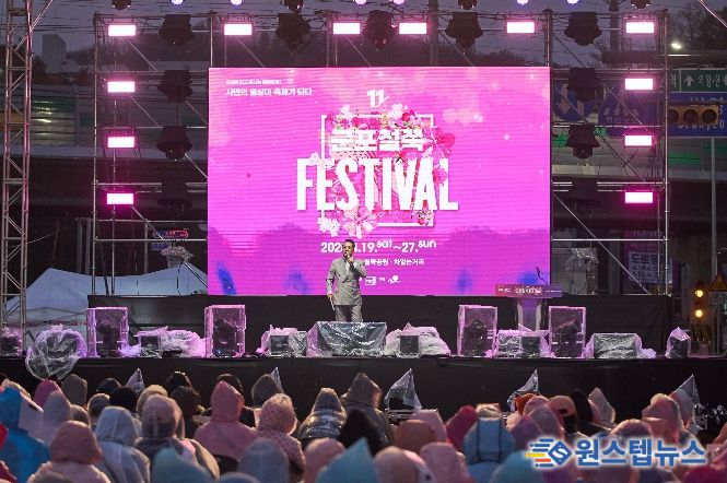 암전과 동시에 시작되는 카운트다운은 관객의 시선을 하나로 모으며, 이어지는 조명쇼와 영상이 철쭉이 피어나는 계절의 흐름을 생생하게 펼쳐낸다. 화려한 조명과 공간을 가득 채운 꽃잎, 관객의 움직임이 어우러지며 축제장은 무대와 객석의 경계가 허물어지고 모두가 함께 만드는 축제의 순간을 완성한다.