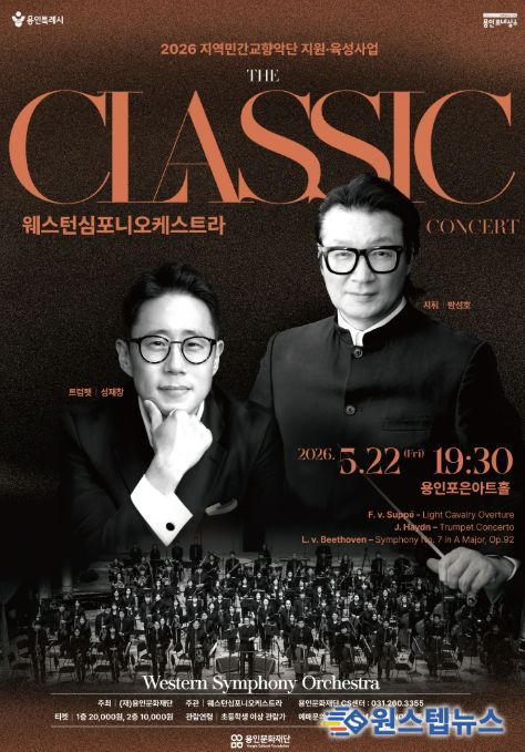 원스텝뉴스 천규영 기자 | 용인문화재단은 오는 5월 22일 오후 7시 30분, 용인포은아트홀에서 기획공연 '콘서트 'The 클래식''을 개최한다. 이번 공연은 ‘2026년 지역민간교향악단 지원육성사업’의 일환으로 진행되며, 세대를 아우르는 클래식 명곡들을 통해 시민들에게 클래식의 매력을 가까이에서 느낄 수 있도록 마련됐다.