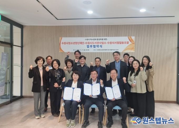 원스텝뉴스 천규영 기자 | 수원시 도서관사업소와 수원시청소년청년재단, 수원시서점협동조합이 지역 독서문화 활성화와 시민 독서활동 증진을 위해 협력하기로 했다.