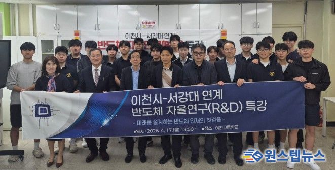 원스텝뉴스 이병희 기자 | 경기도이천교육지원청은 2026년 '서강대학교 연계 반도체 프론티어 자율연구 프로그램'의 시작으로 4월 17일 이천고등학교 화학실에서 반도체 산업·기술·진로 특강을 운영했다.