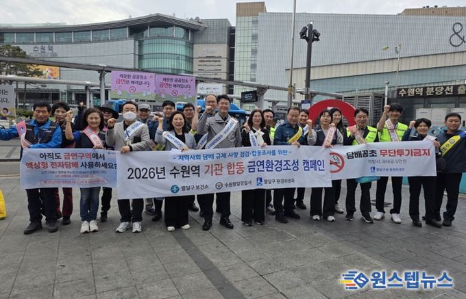 원스텝뉴스 이병희 기자 | 수원시 팔달구보건소는 17일 수원역 일원에서 ‘금연환경조성 합동 캠페인’을 펼쳤다.