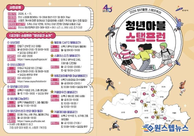 원스텝뉴스 이병희 기자 | 안산시는 청년의 시정 참여를 확대하고 청년공간과 정책에 대한 접근성을 높이기 위해 청년활동 스탬프투어 ‘청년마블 스탬프런’ 사업을 운영한다고 20일 밝혔다.