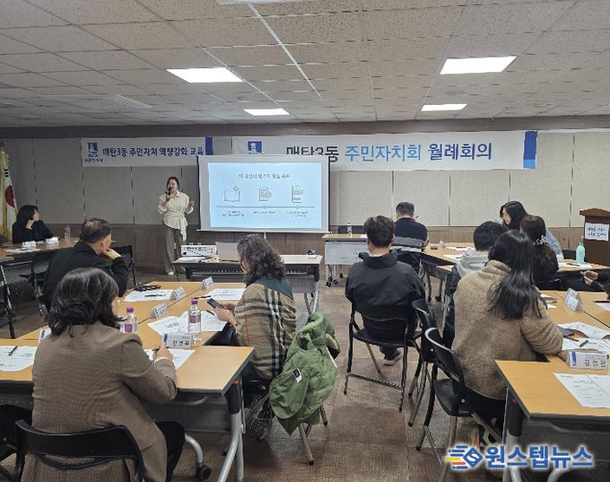 교육은 4월 20일 매탄3동을 시작으로 6월 25일 서둔동까지 순차적으로 진행한다. 동별로 전문 강사가 찾아가 참여형 교육을 운영한다. 이번 과정은 주민자치회 활동에 바로 적용할 수 있도록 실습과 분임 토의를 중심으로 구성했다.