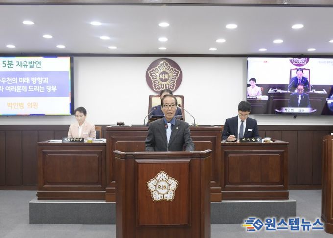 원스텝뉴스 이병희 기자 | 동두천시의회 박인범 의원(더불어민주당, 나선거구)이 제345회 임시회 폐회식에서 시의원으로서의 마지막 5분 자유발언에 나섰다. 제1대, 제8대, 제9대 동두천시의원과 제8대 경기도의회 의원을 거친 박 의원은 이번 임기를 끝으로 의정활동을 마무리하며, 공직자들에게 '시민이 찾아오는 동두천'을 향한 당부의 메시지를 전했다.