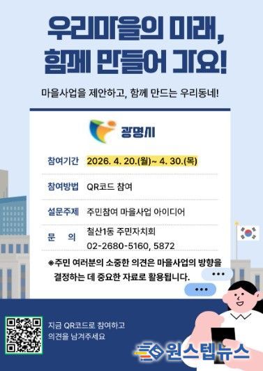 원스텝뉴스 이병희 기자 | 광명시 철산1동 주민자치회는 오는 30일까지 철산1동 주민을 대상으로 내년도 주민자치마을사업 발굴을 위한 설문조사를 실시한다.
