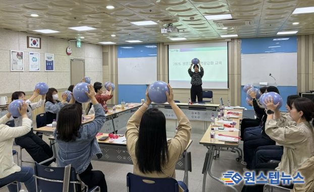이날 교육은 방문간호사의 건강관리 역량 강화를 위해 마련됐으며, 운동교육과 구강관리 실습 중심으로 진행됐으며, 통합건강돌봄센터 소속 운동지도사와 치과위생사가 강사로 참여해 현장에서 활용 가능한 실무 중심 교육을 제공했다.