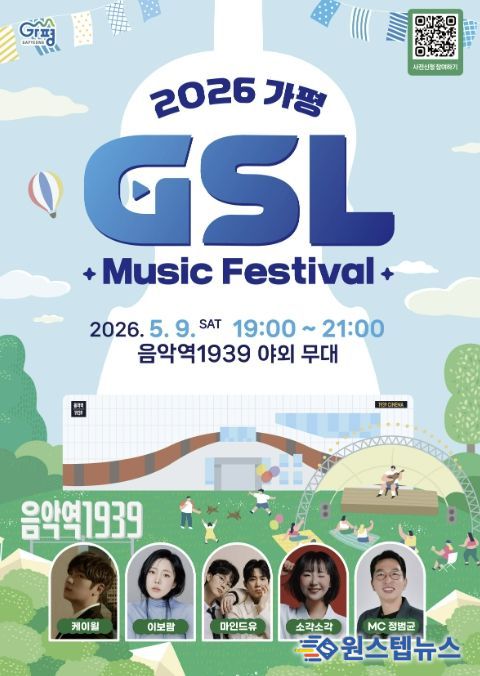 원스텝뉴스 천규영 기자 | 가평군이 오는 5월 9일 케이윌·이보람 등이 전하는 ‘2026 가평 토요 라이브(G-SL) 5월 스프링 콘서트(뮤직 페스티벌)’를 개최한다.