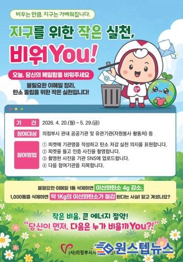 의정부시자원봉사센터 정진선 센터장은“일상에서 쉽게 실천할 수 있는 작은 행동들이 모여 큰 변화를 만든다.”며,“이번 캠페인을 통해 많은 시민들이 탄소 저감 활동에 관심을 가지고 적극적으로 참여하길 기대한다.”고 전했다.