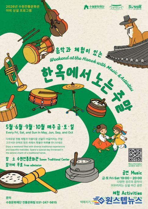 원스텝뉴스 천규영 기자 | 수원문화재단은 오는 5월부터 10월까지 수원전통문화관에서 음악과 전통 체험이 결합 된 야외 상설 프로그램 ‘한옥에서 노는 주말’을 운영한다.