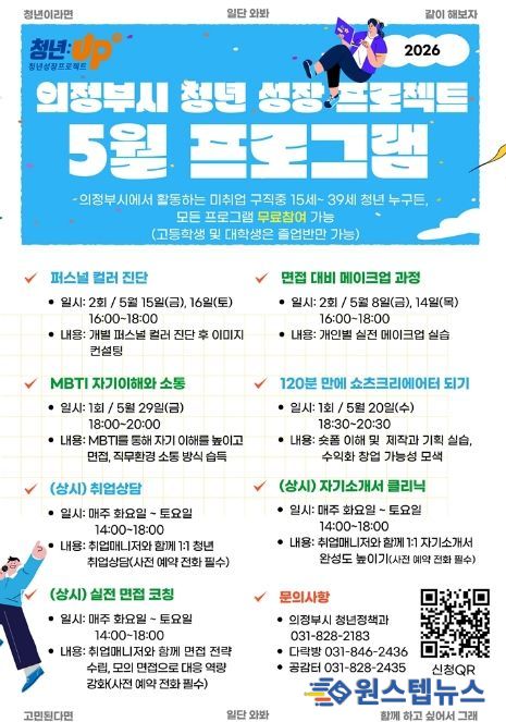 원스텝뉴스 이병희 기자 | 의정부시는 미취업 청년의 취업 준비 역량 강화를 위해 ‘청년성장프로젝트’ 5월 프로그램을 운영한다.