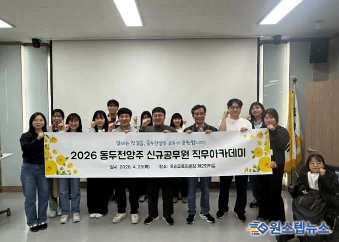 원스텝뉴스 이병희 기자 | 동두천양주교육지원청은 4월 23일 관내 신규발령 지방공무원과 실무수습직원, 사립학교 사무직원을 대상으로 ‘2026년 신규 지방공무원 직무아카데미 '나래오름'’을 운영한다. 이번 프로그램은 신규공무원의 초기 업무 부담과 심리적 긴장도를 완화하고, 공직사회에 안정적으로 적응할 수 있도록 지원하기 위해 마련됐다.
