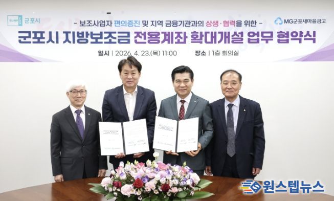 하은호 군포시장은 “이번 협약은 지방보조금 전용계좌 개설 금융기관을 확대하여 보조사업자의 이용 편의를 제고하고, 지역 금융기관과의 상생 협력 기반을 강화하는 데 의의가 있다”며 “앞으로도 관련 제도 개선과 운영체계 고도화를 통해 지방보조금 관리의 투명성과 효율성을 지속적으로 강화해 나가겠다”고 밝혔다.