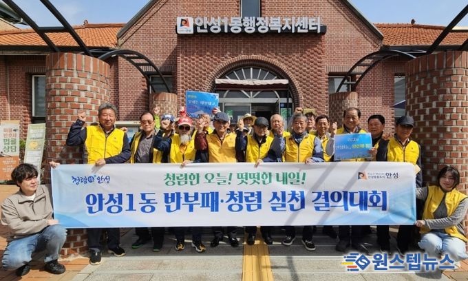 원스텝뉴스 이병희 기자 | 안성시 안성1동은 4월 23일 안성1동 노인회와 방위협의회가 함께한 ‘청렴해 봄’ 릴레이 청렴결의대회를 끝으로, 기관·사회단체가 함께한 청렴 실천 릴레이를 성공적으로 마무리하며 외부청렴도 향상에 힘을 모았다.