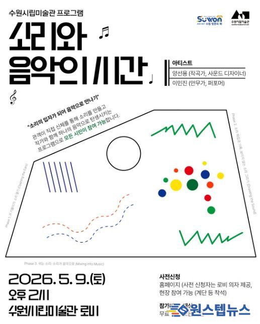 원스텝뉴스 이병희 기자 | 경기도 수원시립미술관은 을 맞아 소리를 주제로 한 음악 프로그램 '소리와 음악의 시간'을 5월 9일 개최하며 참여자를 모집한다.