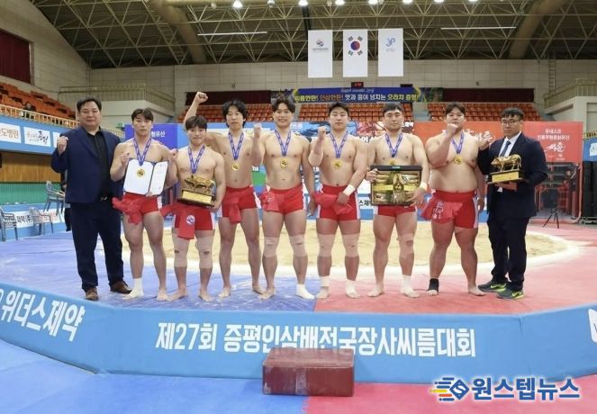 원스텝뉴스 이병희 기자 | 광주시청 씨름팀이 충북 증평스포츠센터에서 열린 ‘제27회 증평인삼배 전국장사씨름대회’에서 단체전 우승을 차지하고 개인전에서도 다수의 입상자를 배출했다.
