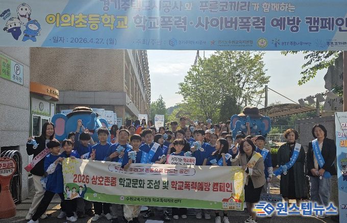 이번 캠페인은 최근 급증하는 청소년 사이버폭력 사안에 대응하고 건강한 디지털 시민 의식을 함양하기 위해 마련됐으며, 수원교육지원청을 비롯해 경기주택도시공사(GH), 푸른나무재단(푸른코끼리), 이의초 학부모회 관계자 등이 참여했다.